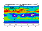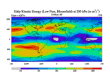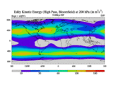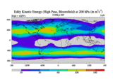 Low Pass Eddy Kinetic Energy at 200 hPa