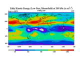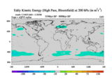 Low Pass Eddy Kinetic Energy at 200 hPa