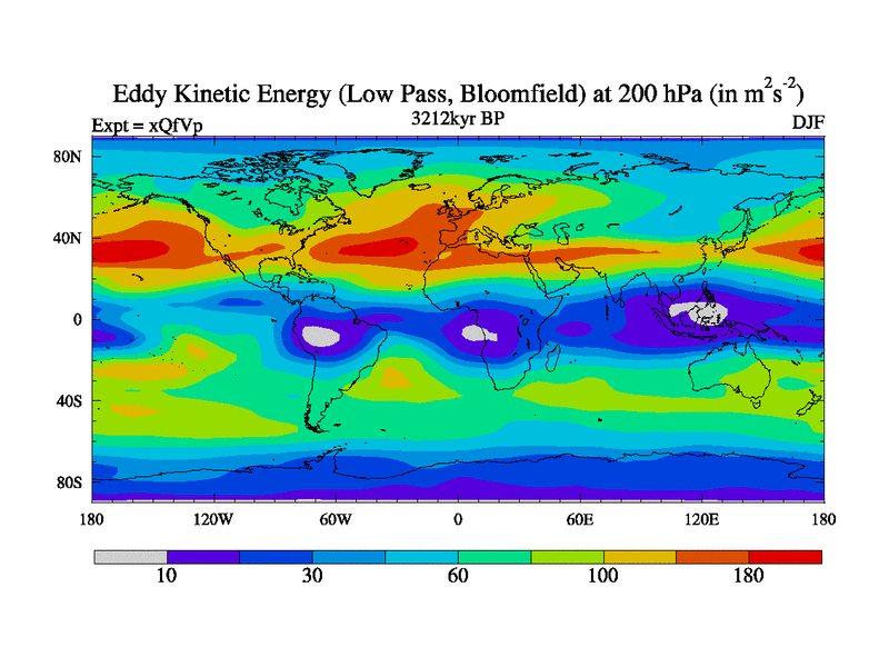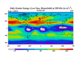 Low Pass Eddy Kinetic Energy at 200 hPa