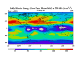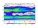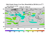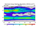 Low Pass Eddy Kinetic Energy at 200 hPa