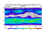 High Pass Eddy Kinetic Energy at 200 hPa