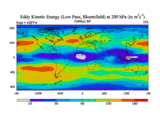 Low Pass Eddy Kinetic Energy at 200 hPa