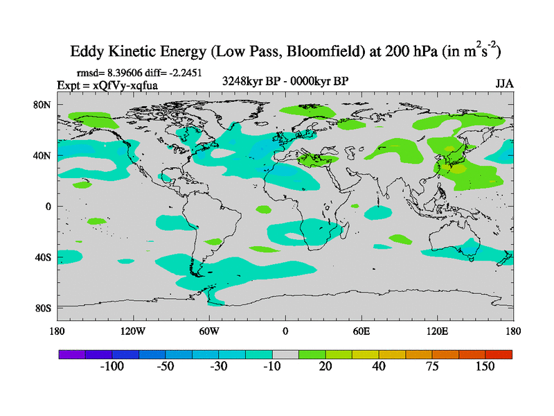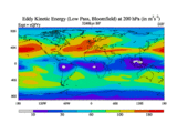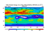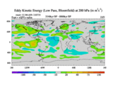 Low Pass Eddy Kinetic Energy at 200 hPa