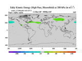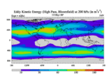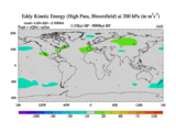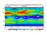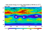 Low Pass Eddy Kinetic Energy at 200 hPa