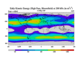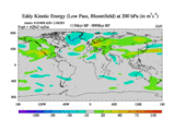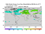 Low Pass Eddy Kinetic Energy at 200 hPa