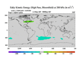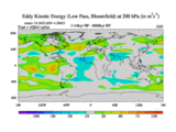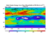 Low Pass Eddy Kinetic Energy at 200 hPa