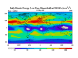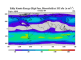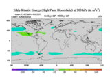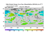 Low Pass Eddy Kinetic Energy at 200 hPa