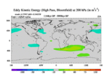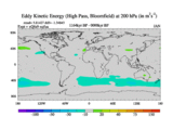 Low Pass Eddy Kinetic Energy at 200 hPa