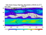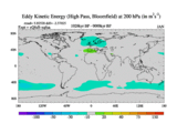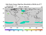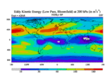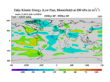 Low Pass Eddy Kinetic Energy at 200 hPa