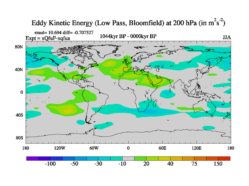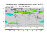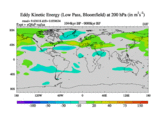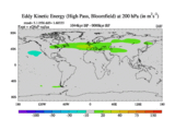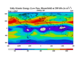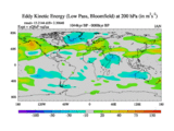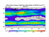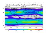 Low Pass Eddy Kinetic Energy at 200 hPa