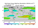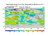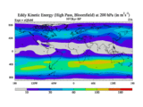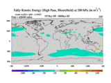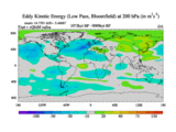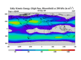Low Pass Eddy Kinetic Energy at 200 hPa