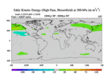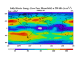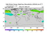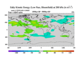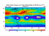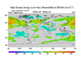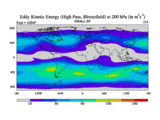 Low Pass Eddy Kinetic Energy at 200 hPa