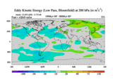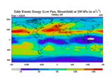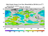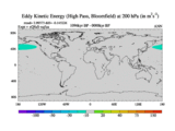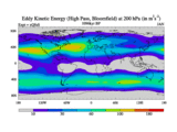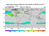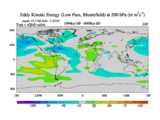 Low Pass Eddy Kinetic Energy at 200 hPa