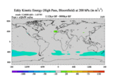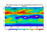 Low Pass Eddy Kinetic Energy at 200 hPa