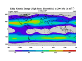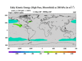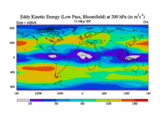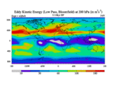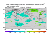 Low Pass Eddy Kinetic Energy at 200 hPa