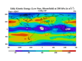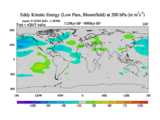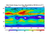 Low Pass Eddy Kinetic Energy at 200 hPa