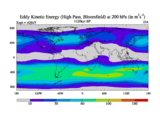 High Pass Eddy Kinetic Energy at 200 hPa