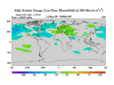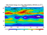 Low Pass Eddy Kinetic Energy at 200 hPa