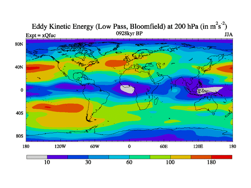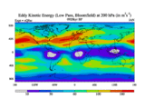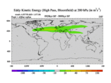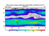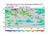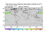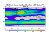 Low Pass Eddy Kinetic Energy at 200 hPa