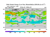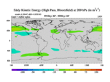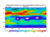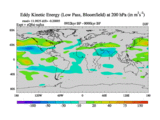 Low Pass Eddy Kinetic Energy at 200 hPa