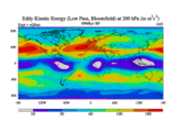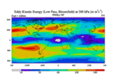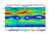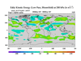 Low Pass Eddy Kinetic Energy at 200 hPa