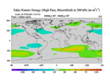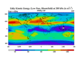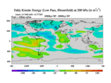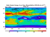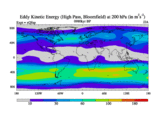 Low Pass Eddy Kinetic Energy at 200 hPa