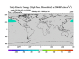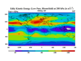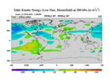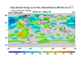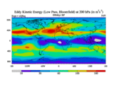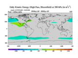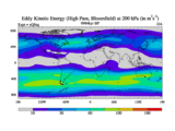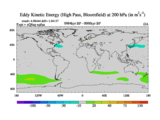 Low Pass Eddy Kinetic Energy at 200 hPa
