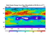 Low Pass Eddy Kinetic Energy at 200 hPa