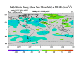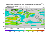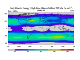 Low Pass Eddy Kinetic Energy at 200 hPa