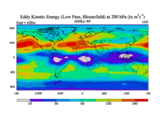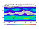 Low Pass Eddy Kinetic Energy at 200 hPa