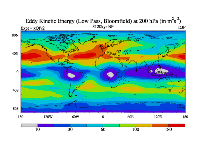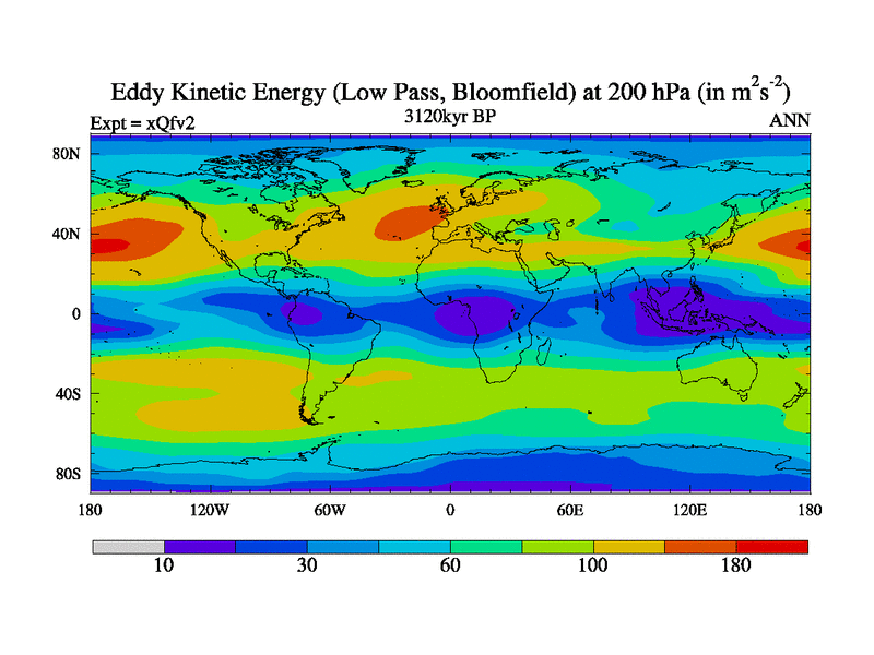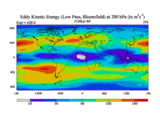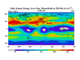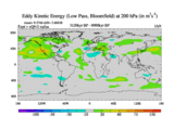 Low Pass Eddy Kinetic Energy at 200 hPa