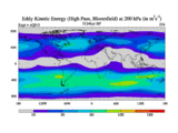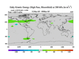 Low Pass Eddy Kinetic Energy at 200 hPa