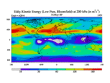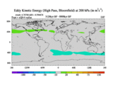 Low Pass Eddy Kinetic Energy at 200 hPa