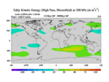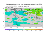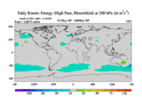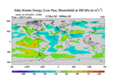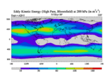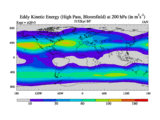 Low Pass Eddy Kinetic Energy at 200 hPa