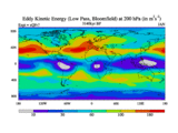 Low Pass Eddy Kinetic Energy at 200 hPa
