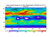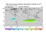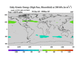 Low Pass Eddy Kinetic Energy at 200 hPa