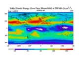 Low Pass Eddy Kinetic Energy at 200 hPa