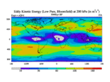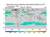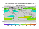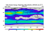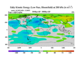 Low Pass Eddy Kinetic Energy at 200 hPa