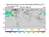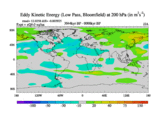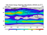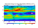 Low Pass Eddy Kinetic Energy at 200 hPa