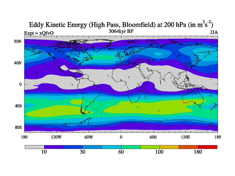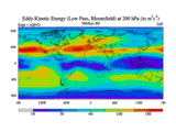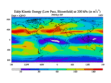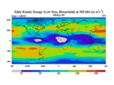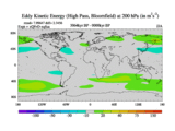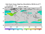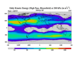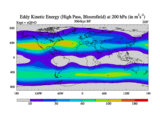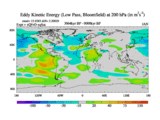 Low Pass Eddy Kinetic Energy at 200 hPa