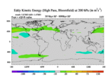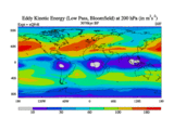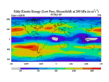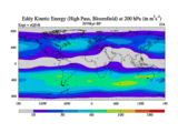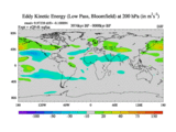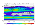 Low Pass Eddy Kinetic Energy at 200 hPa