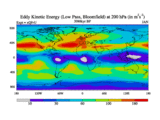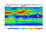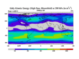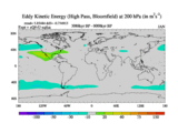Low Pass Eddy Kinetic Energy at 200 hPa
