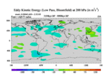 Low Pass Eddy Kinetic Energy at 200 hPa