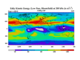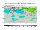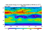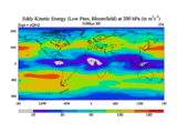 Low Pass Eddy Kinetic Energy at 200 hPa