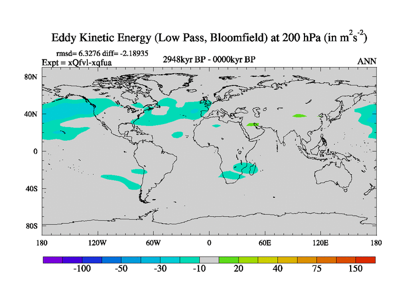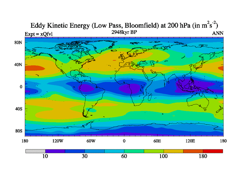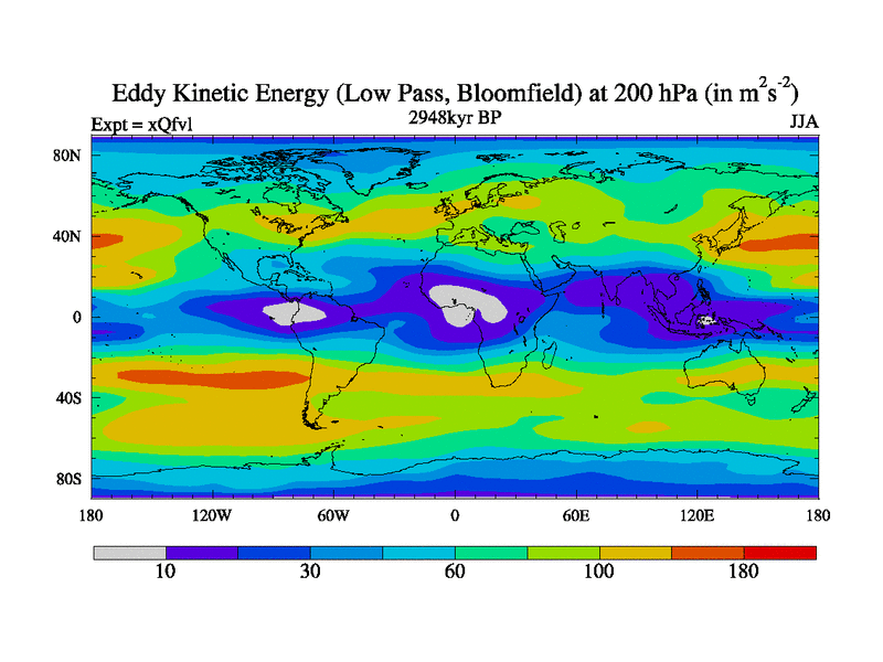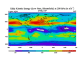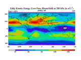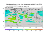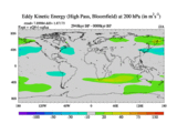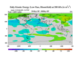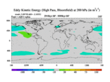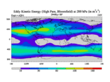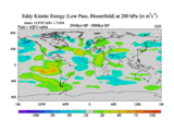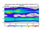 Low Pass Eddy Kinetic Energy at 200 hPa