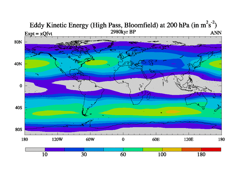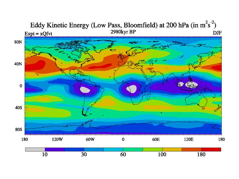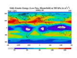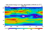 Low Pass Eddy Kinetic Energy at 200 hPa