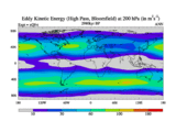 High Pass Eddy Kinetic Energy at 200 hPa