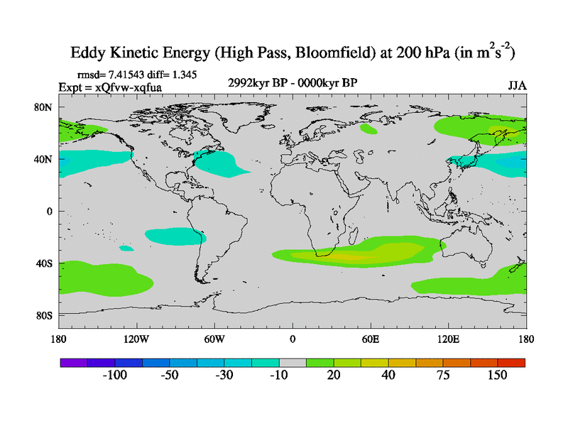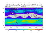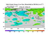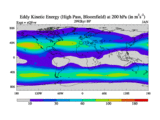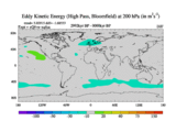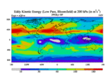 Low Pass Eddy Kinetic Energy at 200 hPa