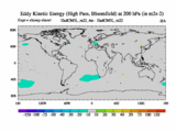 Low Pass Eddy Kinetic Energy at 200 hPa