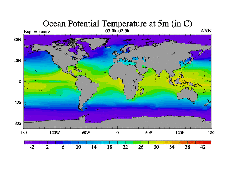 Ocean Potential Temperature at 5mOcean Potential Temperature at 2116m